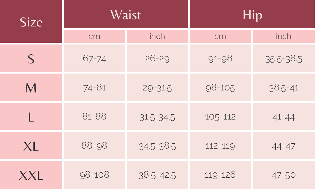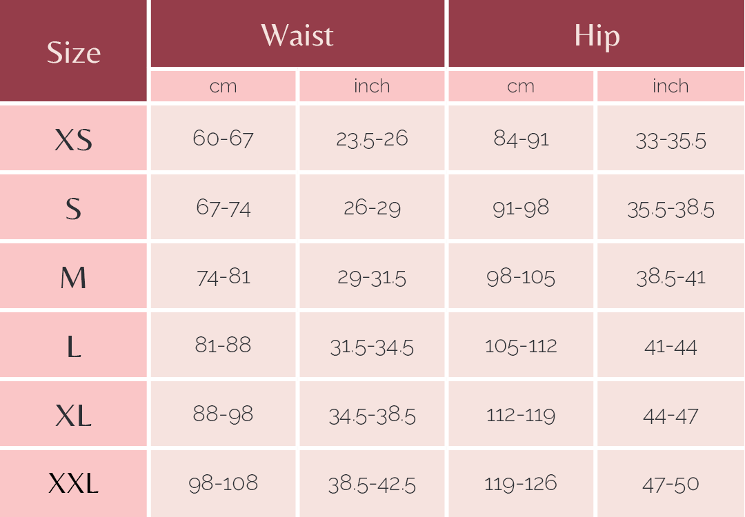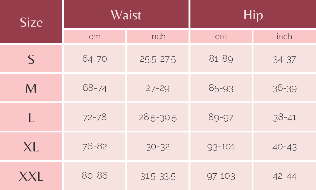 Note: Please measure your natural waist (around 2 inches above your belly button) and the widest hip.